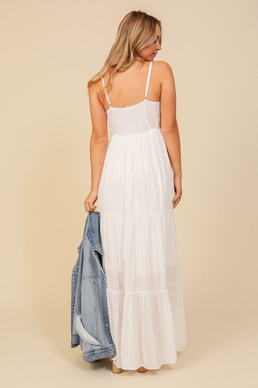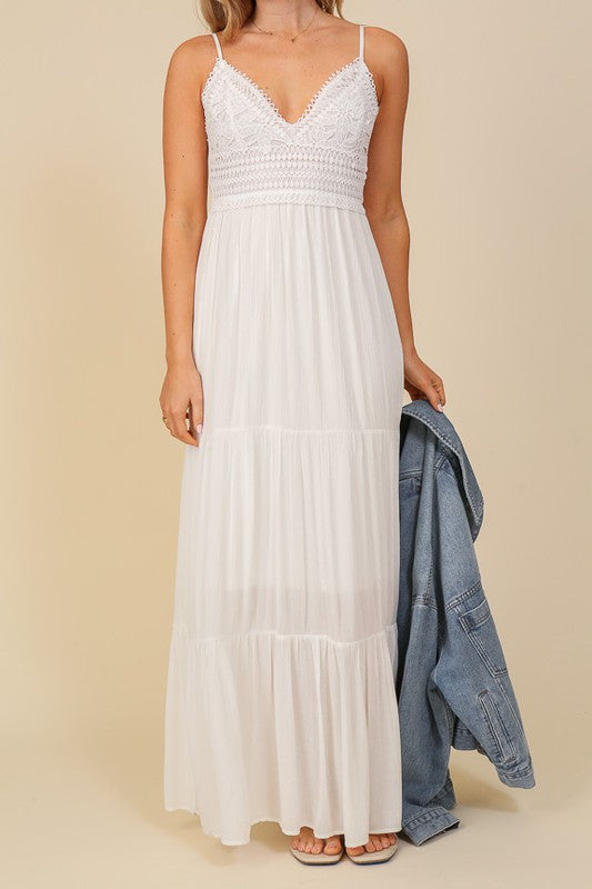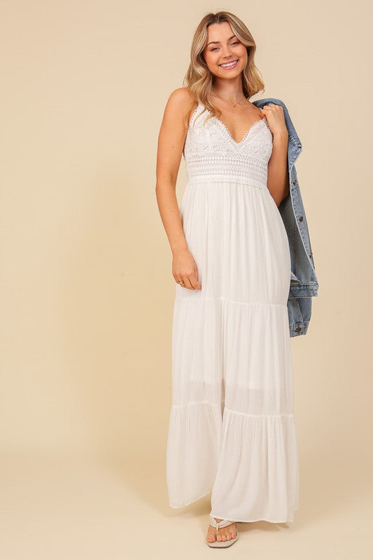 This dress features adjustable straps and a lace front that exudes a free-spirited charm. The smocked back ensures a comfortable and flattering fit, while the lining provides coverage without compromising the delicate lace detailing.